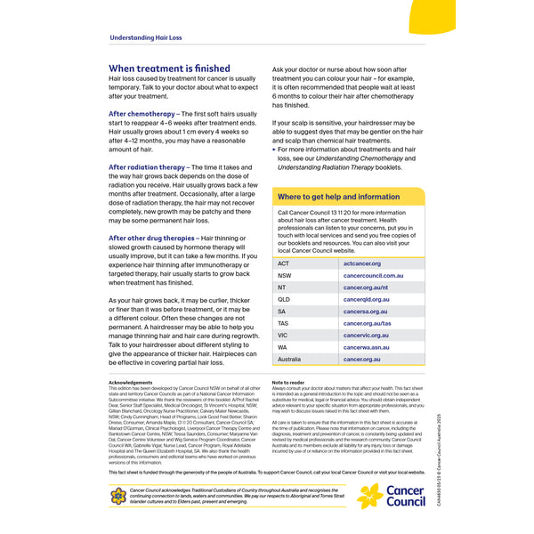 This fact sheet provides information on hair loss that may result as a side effect of cancer treatment. Not all cancer treatment causes hair loss.
