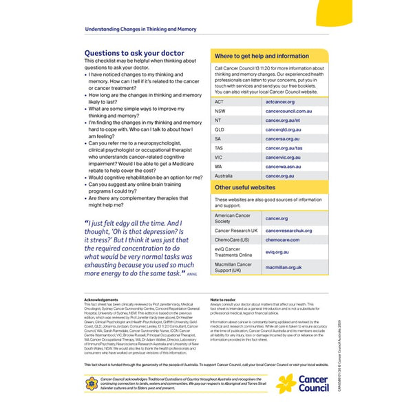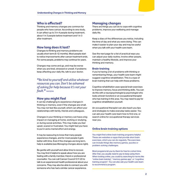 Some people diagnosed with cancer notice changes in the way they think and remember information. This is called cancer-related cognitive impairment, but people may also refer to it as "cancer fog" or "chemo brain".